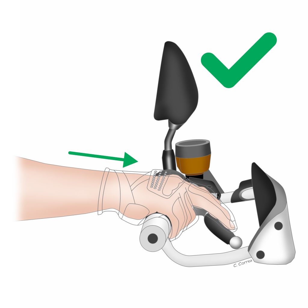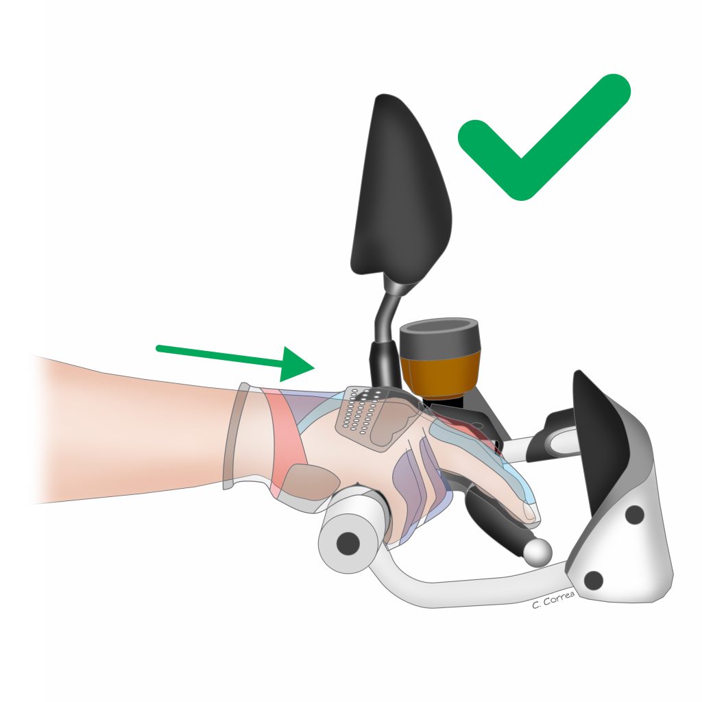 • Distribuir el apoyo en la parte externa de la mano, liberando la presión de zonas sensibles.